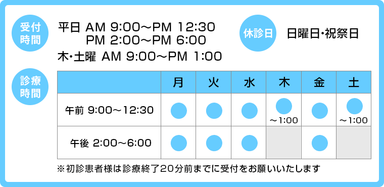バス・車ご利用の際の当院へのアクセス方法をご案内いたします。また土曜や休診日に関する案内もこちらでご確認いただけます。